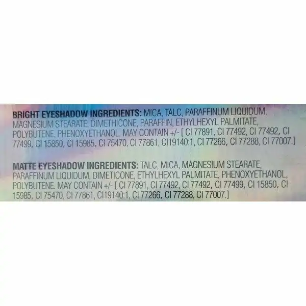 Il comprend 9 teintes mates veloutées, 6 teintes crémeuses métalliques ultra-brillantes avec des reflets saturés électrisants, 1 poudre scintillante avec des perles de verre et des paillettes argentées, et 2 teintes transparentes multi-étincelantes pour un éclat supplémentaire.